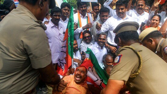 திமுக எம்பி ஆ. ராஜா மத்திய அமைச்சர் அமித்ஷாவை பற்றி அவதூறாக பேசியிருந்தார். அதை சிறிதும் கண்டிக்காத முதல்வர் தற்சமயம் போலீஸ் ஆத்து மீறி பாஜகவினரை கைது செய்யும்போதும் அமைதி காப்பதை பார்த்தால், முதல்வரும்