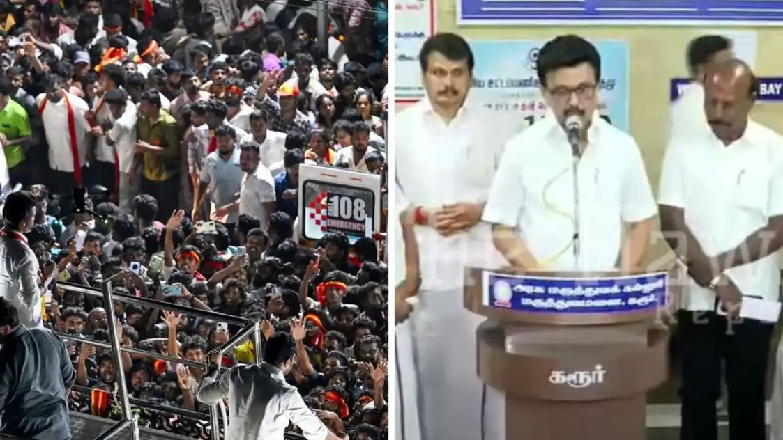 கரூர் மாவட்டத்தில் நடந்த தமிழக வெற்றிக் கழக தலைவர் விஜய்யின் பிரச்சாரத்தில் ஏற்பட்ட கூட்ட நெரிசல் விபத்தில் 38 பேர் உயிரிழந்தது தமிழகத்தை அதிர்ச்சி அடைய வைத்துள்ளது. நேற்று (செப்டம்பர் 27) கரூர் 100